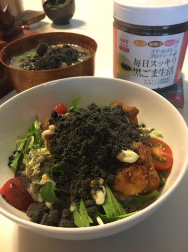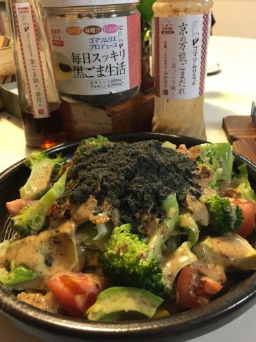 黒ごま生活をお肉代わりにサラダにトッピング♪