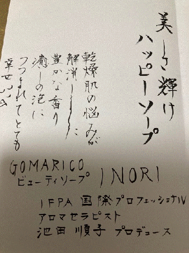 この『GOMARICOのおまじない』を唱えながら、「この石鹸を使う方が、どうか健康で幸せでありますように」と祈りを込めて作られた石鹸です。ごまが美味しくなるように、大切なあの方やあなたの心や身体にもうれしい変化が現れるかも。楽しみながらお使いください。