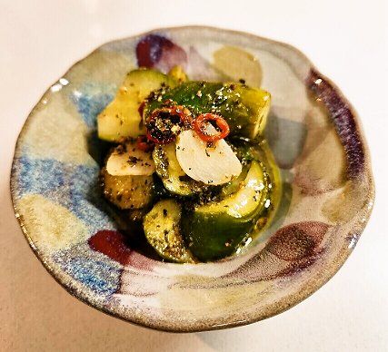 香ばしいごまの香りとガツンと来るガーリックと唐辛子のパンチ、そこにさわやかなバジルが鼻を抜ける。